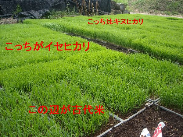 すみません。話が脱線しましたが写真をご覧戴くと古代米がまばらに生えているのが見えると思います(見えますか?)これは、こういう品種だからではなくお米の量が少なくてこうなってしまったようです。
